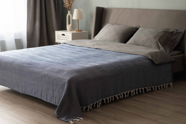 Плед изготовлен из 100% хлопка, что делает его мягким, приятным на ощупь и дышащим.