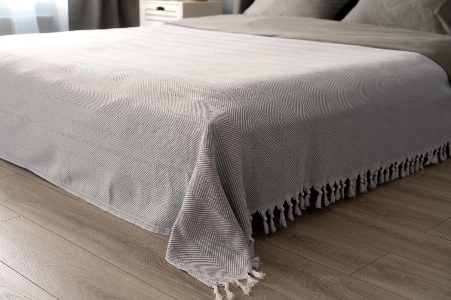 Плед изготовлен из 100% хлопка, что делает его мягким, приятным на ощупь и дышащим.