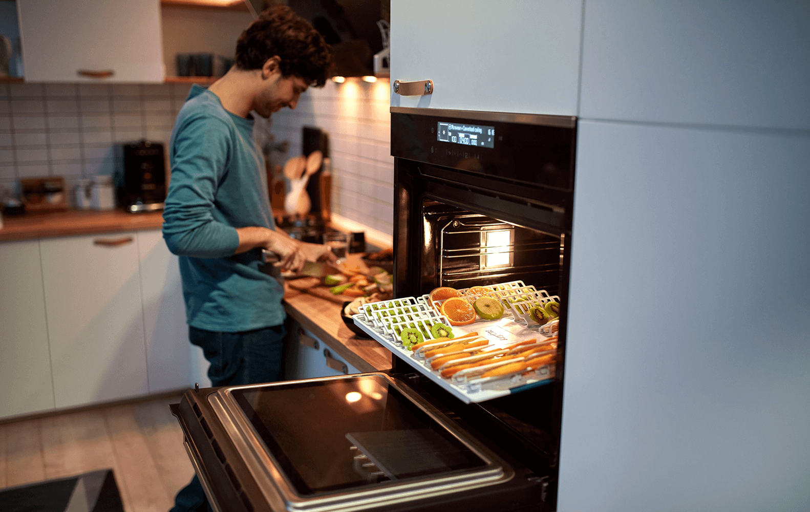 Забудьте о бесконечном отскребании жира и пригоревшей пищи. Благодаря системе очистки SteamShine ваш духовой шкаф выполнит всю тяжелую работу за вас. Просто налейте в противень немного воды и наблюдайте за технологической магией. SteamShine размягчает остатки жира и пищи внутри духового шкафа, после чего их достаточно просто вытереть.