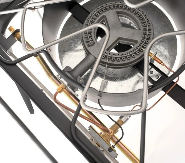 - Ветрозащитный экран окружает конфорку с трех сторон и сохраняет тепло, уменьшая затраты времени и топлива.