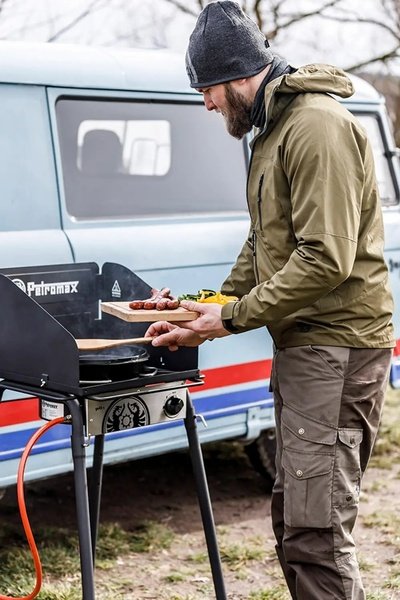 Мощная газовая плита на одну конфорку от немецкого бренда Petromax - это полноценная уличная кухня в портативном формате. Конфорка с двумя рядами форсунок развивает мощность 5 кВт - больше, чем у турбо-конфорки домашней плиты. Устойчивая конструкция на стальных ножках выдерживает нагрузку до 80 кг, поэтому подходит даже для тяжелой чугунной посуды. Благодаря компактности и продуманной эргономике эта плита идеальна для автопутешествий, кемпинга, дачи или рыбалки. Она работает от бытовых газовых баллонов и может использоваться как на улице, так и в помещении. После приготовления легко складывается и без проблем помещается в багажник авто.