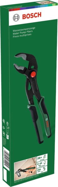 Плоскогубцы для водяных насосов Bosch - это незаменимый инструмент для выполнения сантехнических работ дома. Они сочетают в себе надежность, функциональность и удобство использования, что делает их отличным выбором для широкого спектра задач. Эти универсальные плоскогубцы имеют 26 зубцов для захвата труб разного размера. С помощью одной кнопки можно точно отрегулировать раскрытие до максимального значения 46 мм. Инструмент обеспечивает стабильное и комфортное использование даже в ограниченном пространстве благодаря эргономичным ручкам с мягким покрытием. Эти плоскогубцы изготовлены из прочной, твердой углеродистой стали и имеют черное фосфатированное покрытие для высокой устойчивости к коррозии.