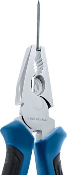Комбинированные плоскогубцы от Bosch изготовлены из высокопрочной хром-ванадиевой стали со специально закаленными режущими кромками для увеличения срока службы. Оптимизированная конструкция с большим рычагом требует на 30% меньше усилий при резке, чем обычные плоскогубцы, а мягкая резиновая ручка с антискользящим покрытием гарантирует комфортное и безопасное использование, особенно при работе одной рукой.