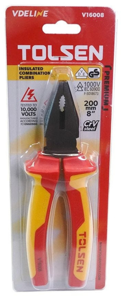 Плоскогубцы комбинированные Tolsen Premium, диэлектрические, для работ под напряжением 1000В, 200мм, CrV (V16008)