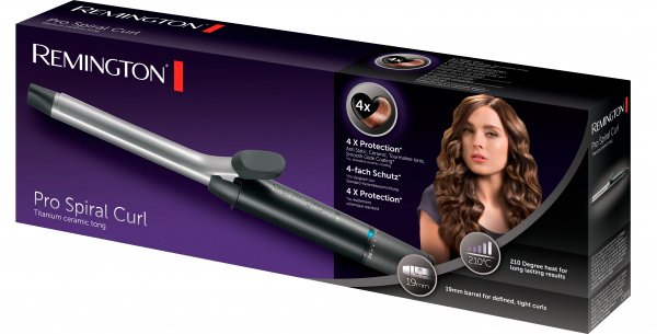 Создавайте тугие, упругие завитки с помощью плойки CI5519 Pro Spiral Curl от Remington с диаметром 19 мм. Модель позволяет с легкостью работать как с прямыми, так и с волнистыми волосами.