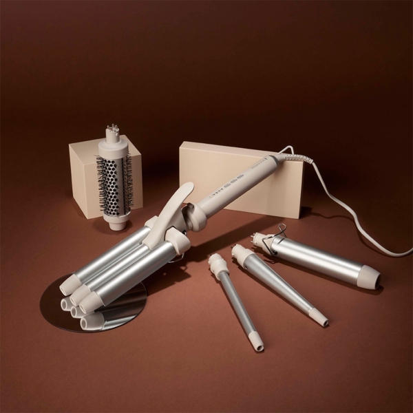Remington Trendology содержит пять сменных насадок для создания разнообразных причесок от пружинных локонов до объемных волн. Пять насадок позволяют формировать голливудские локоны, естественные волны, спиральные завитки или прикорневой объем. Система фиксации и кнопка извлечения упрощают работу с насадками.