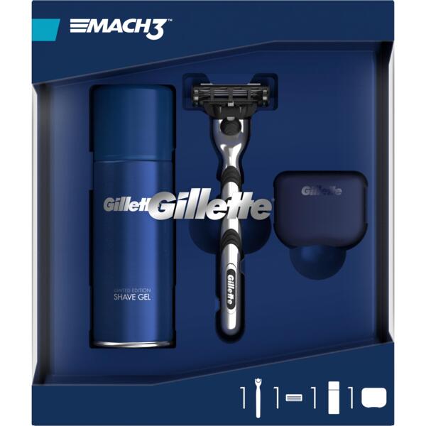Подарочный набор бритва Gillette Mach3 + Гель для бритья + Дорожный чехол для бритвы