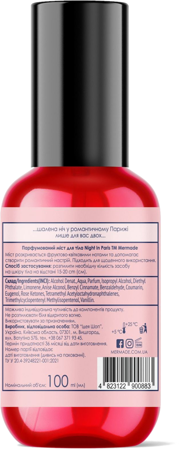 Состав: Alcohol Denat., Aqua, Parfum, Isopropyl Alcohol, Diethyl Phthalate, Limonene, Anise Alconol, Benzyl Cinnamate, Benzaldehyde, Coumarin, Eugenol, Rose Ketones, Tetramethyl Acetyloctahydronaphthalenes, Trimethylcyclopentenyl Methylisopentenol, Vanillin.