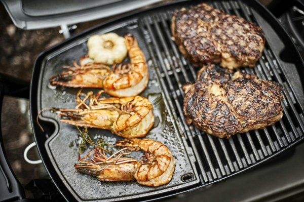 Проснитесь и приготовьте завтрак на свежем утреннем воздухе. Пеките блины на завтрак или кексы на обед. Двусторонняя поверхность сковородки позволяет вам готовить деликатные блюда, которые не подходят для жарки на решетке для готовки. Когда вы заполняете свой дворик сладким ароматом блинов с фруктами на рассвете или запекаете морепродукты вечером - наслаждайтесь жизнью, а всю готовку блюд сделает за вас сковородка. Подходит для газовых грилей серий Weber Q 100/1000.