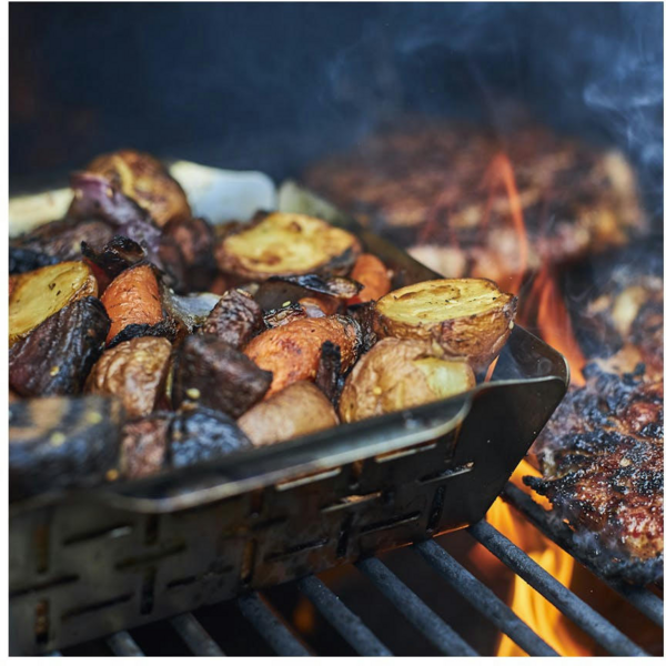 Яркие зажаренные овощи на хрустящей основе пиццы. Запеченные кабачки и тыква, дополняющие ваш любимый осенний пир. Или нарезанные кубиками овощи, искусно запеченные для открытия аромата, о котором вы даже не подозревали. Используйте корзину для жарки Deluxe Grilling Basket для абсолютно простого приготовления нарезанных овощей или даже маленьких кусочков мяса. Подходит для всех Weber Q 300/3000 и больших газовых грилей, а также для угольных грилей от 47 сантиметров и более.