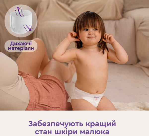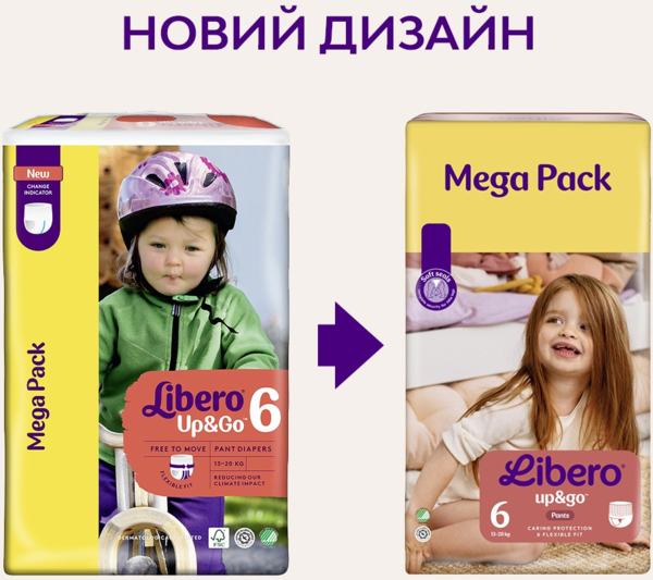 Libero Up&Go - это комфортные подгузники-трусики для активного ребенка отныне с индикатором влаги. Подгузники-трусики всегда легко заменить, даже на очень подвижных малышах. Просто оденьте трусики, как обычное белье и снимите, разорвав боковые швы.