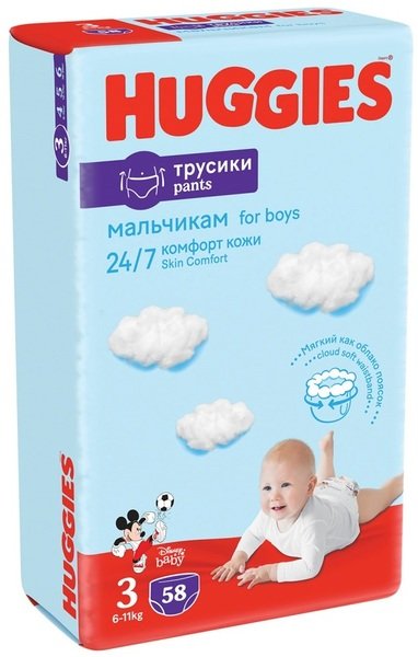 Трусики-подгузники для мальчиков Huggies Pants Размер 3 6-11 кг Mega 58 шт
