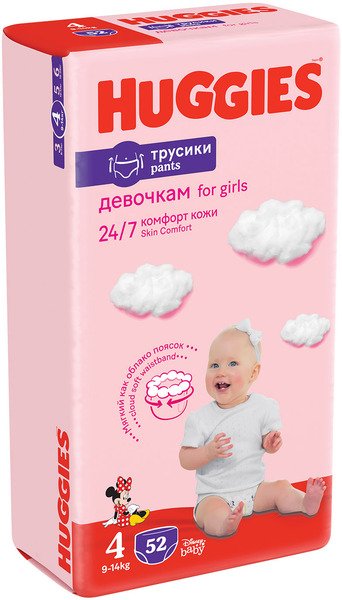 Трусики-подгузники для девочек Huggies Pants Размер 4 9-14 кг Mega 52 шт