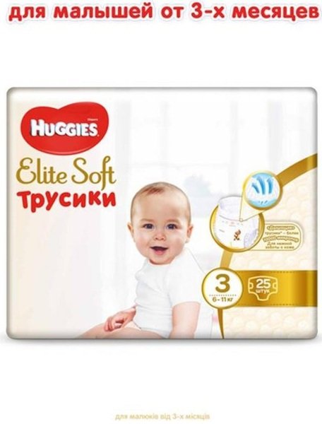 - Подгузники Huggies Elite Soft Pants Размер 3 M 6-11 кг 25 шт