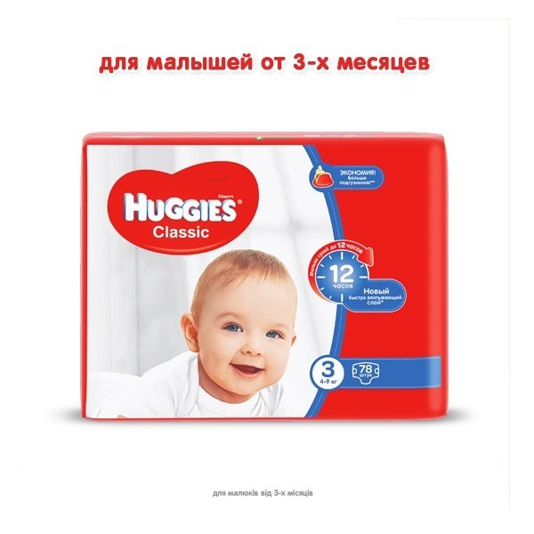 - Подгузники Huggies Classic Размер 3 4-9 кг Megapack 78 шт