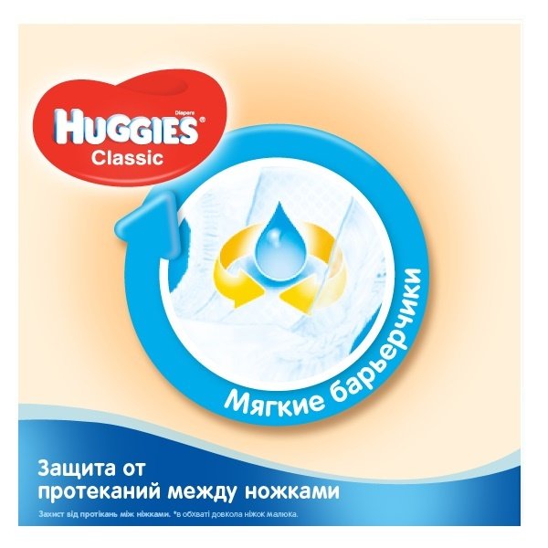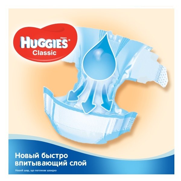 Подгузники Huggies Classic (Хаггис Классик) – классическая серия подгузников от известного производителя. Подгузник состоит из впитывающего слоя из целлюлозы и непромокаемого внешнего слоя из пластических материалов.