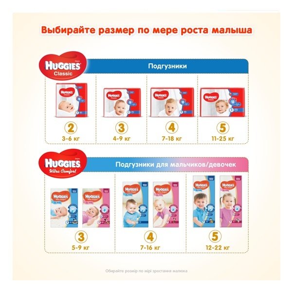 С подгузниками Huggies Classic Вашему малышу будет удобно днем и комфортно ночью.