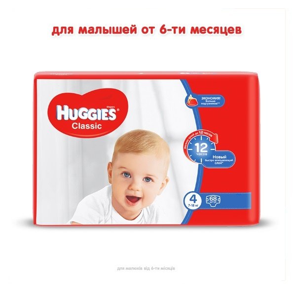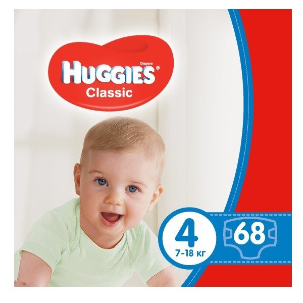 - Подгузники Huggies Classic Размер 4 7-18 кг Megapack 68 шт