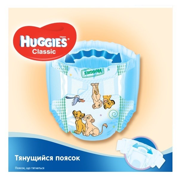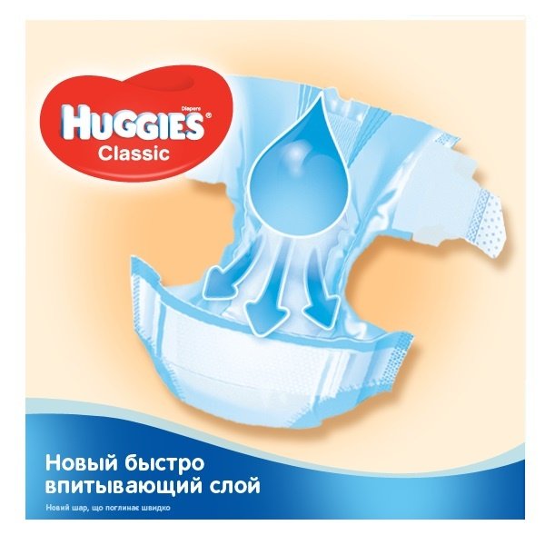 Подгузники Huggies Classic (Хаггис Классик) – классическая серия подгузников от известного производителя. Подгузник состоит из впитывающего слоя из целлюлозы и непромокаемого внешнего слоя из пластических материалов.
