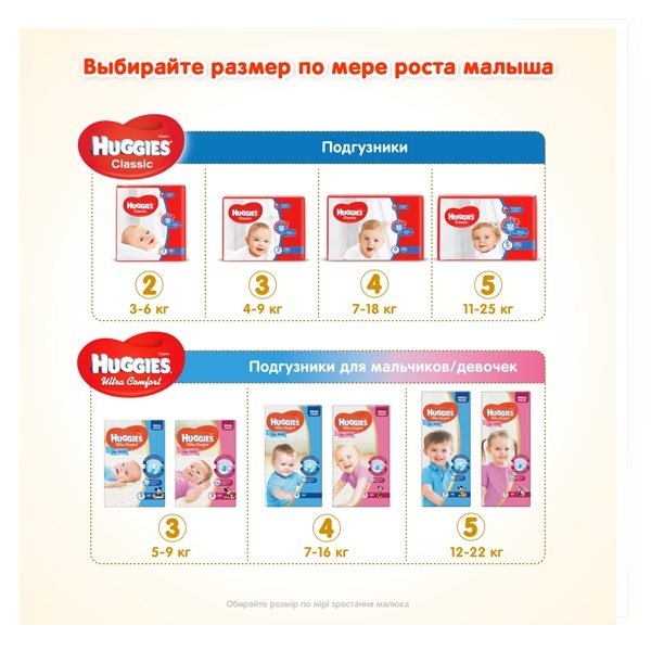 С подгузниками Huggies Classic Вашему малышу будет удобно днем и комфортно ночью.