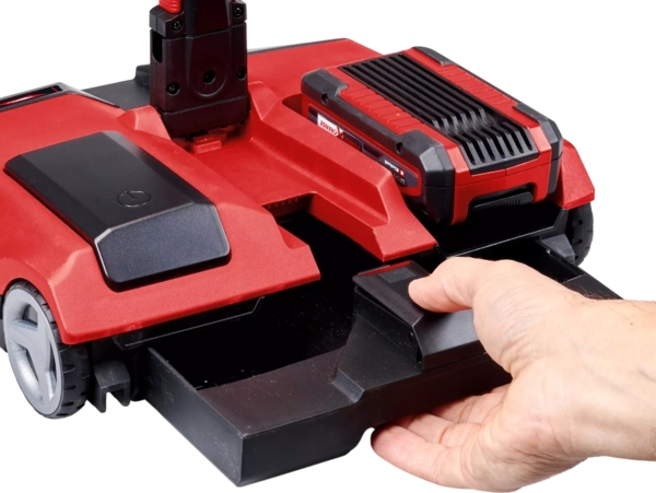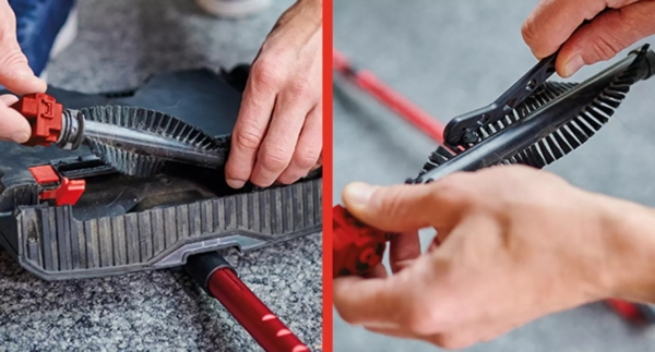 Беспроводная подметальная машина оснащена очистной кромкой в дополнение к щеточному валику. Это облегчает подметание всех твердых полов. Кроме того, очистной валик легко снимается и поэтому может быть заменен для очистки с помощью инструмента для чистки после подметания.