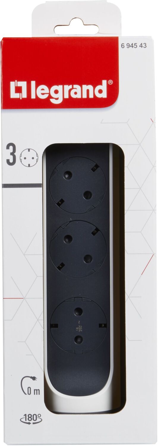 - Удленитель Legrand ПРЕМИУМ поворотный 3х2К+З розетки 16 А, без кабеля, Белый/Черный(694543)