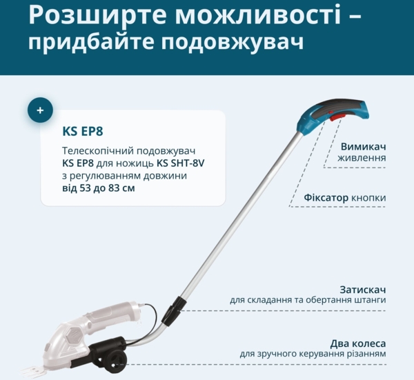 Похожие товары Удлинитель телескопический Konner&Sohnen для ножниц KS SHT-8V 83см (KSEP8)