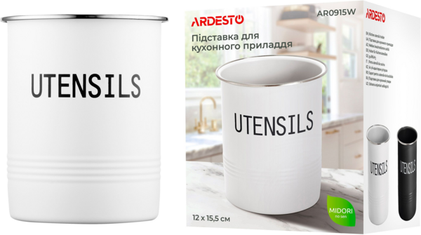 - Подставка для кухонных принадлежностей ARDESTO Midori 12х15.5см, белый (AR0915W)