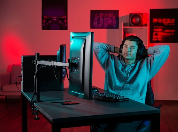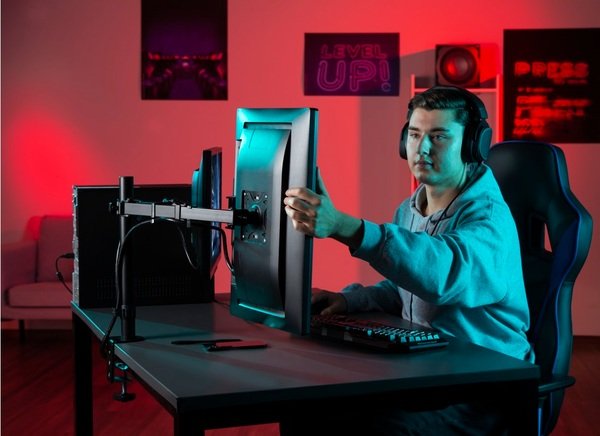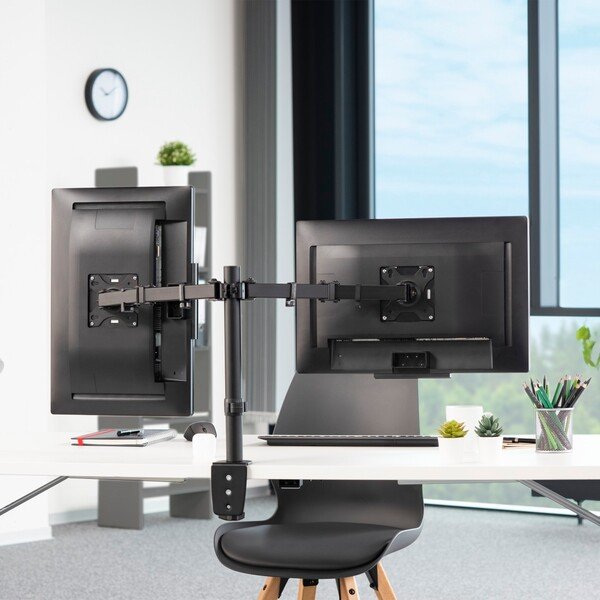 Эргономика в офисе начинается с эргономичного сидения за столом на офисном стуле и заканчивается размещением вашего оборудования, такого как монитор, клавиатура и мышь. Рабочая станция должна подстраиваться под вас, а не наоборот — например, с нашим поворотным креплением для монитора с двойным кронштейном для двух мониторов. Крепление для монитора позволяет расположить экран именно в том положении, которое удобно для вас. Проще говоря, эргономичная модернизация!