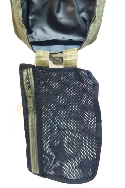 - 2 внутренних кармана, которые при открывании аптеки расположены отверстием вверх: содержимое не высыпается. На карманах нашиты петли из резинки для крепления содержимого аптечки.