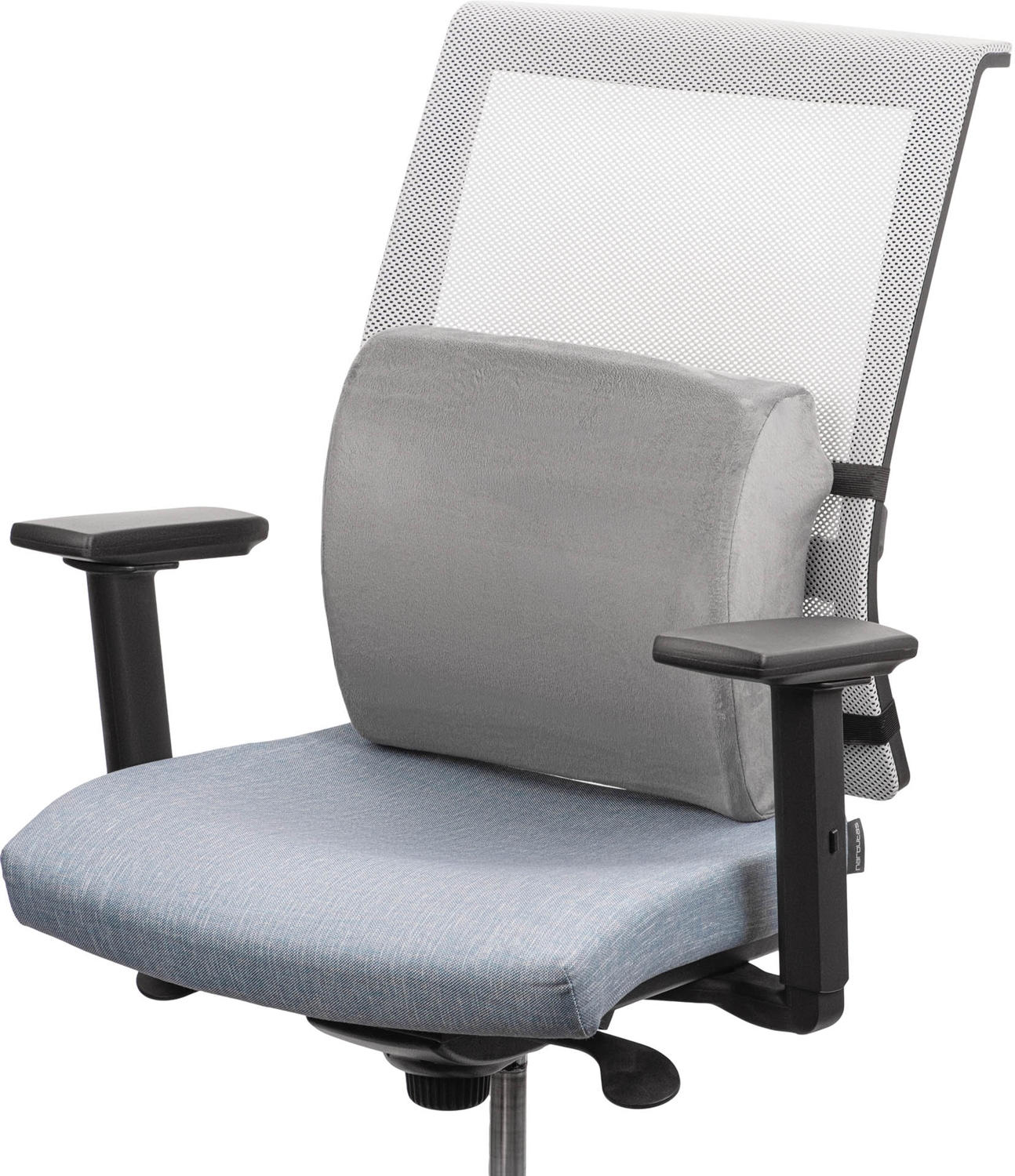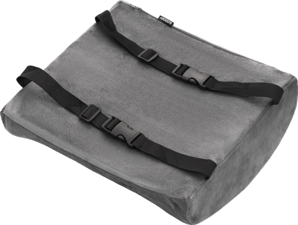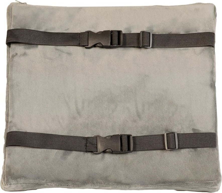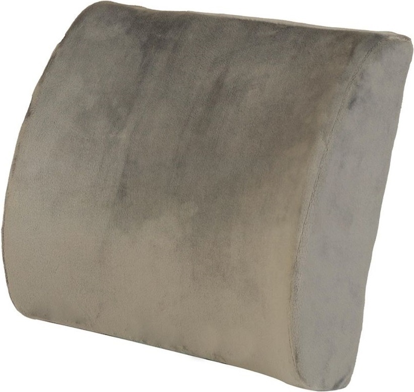 Благодаря компактной форме и надежному креплению подушку легко использовать в автомобиле или офисном кресле. Съемный чехол изготовлен из мягкого велюра. Предусмотрена застежка-молния, с которой уход за изделием является простым. Серый цвет придает подушке сдержанный и современный вид.