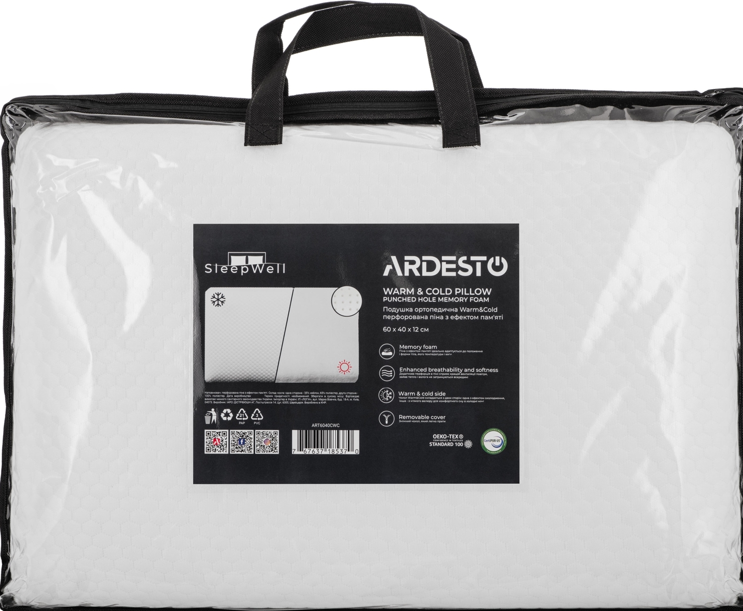 - Подушка ортопедическая ARDESTO Sleepwell Warm&Cold 60х40х12см, белый (ART6040CWC)