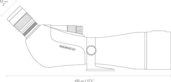 Окулярный узел Hawke Endurance ED расположен под углом 45º относительно продольной оси трубы - это очень удобно для наблюдений в положении лежа и с настольных штативов. Корпус поворачивается вокруг оси, устанавливается под любым углом и фиксируется в кольце с разъемом для крепления штатива. Из интересных решений можно отметить четкие фиксированные положения трубы при повороте вокруг оси в точках 0, 45 и 90. Выдвижная солнцезащитная бленда защищает объектив от солнечных бликов и от осадков. На защитной бленде находится специальный целик для предварительного наведения трубы на цель. Монтажная база трубы адаптирована под стандартное крепление фотоштатива, поэтому поиск необходимой опоры для наблюдения - не является проблемой.