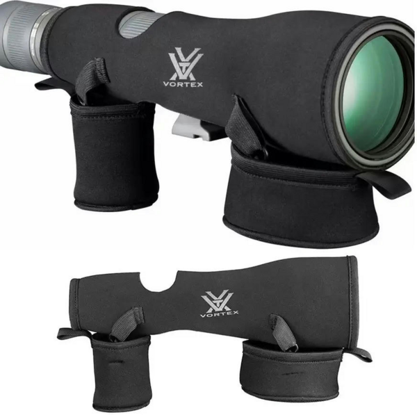 Кардинально обновленная линейка подзорных труб Vortex Razor HD создает новый стандарт высококачественных оптических технологий, прецизионной сборки и функциональности оптических приборов. Труба получила современный дизайн и теперь оснащена новой системой спиральной фокусировки, позволяющей более точно настраивать фокус. Благодаря использованию апохроматического объектива с низкодисперсными HD-стеклами, фирменных просветляющих, отражающих и защитных покрытий, труба имеет поистине выдающиеся оптические характеристики, позволяющие ее использовать как профессиональный оптический прибор на спортивных тренировках и соревнованиях, в том числе и для наблюдения баллистической траектории полета пули. Отличную четкость изображения от края до края, высокое разрешение и натуральную цветопередачу оценят, в том числе бердвочеры и профессиональные фотографы, занимающиеся диджископпингом. Стоит отметить, что разработка, производство и сборка данной модели осуществляется исключительно на территории США, каждая подзорная труба Vortex Razor HD имеет свой индивидуальный серийный номер, а пожизненная гарантия производителя является лучшим подтверждением качества оптических приборов Vortex. Из интересных решений, примененных в конструкции, стоит отметить специальный замок для дополнительной фиксации окуляра. Замок исключает возможность случайного смещения или скручивания окуляра во время смены увеличения. Для установки окуляра необходимо установить замковый фиксатор на трубе в положение "открыто", вставить окуляр в байонетное крепление трубы таким образом, чтобы совместить риску увеличения на окуляре и риску замкового фиксатора на трубе, прижать его к основанию трубы и прокрутить по часовой стрелке на 1/8 оборота до упора. После этого необходимо вернуть замковый фиксатор в положение "закрыто". Кольцо с адаптером для крепления штатива проворачивается вокруг корпуса, надежно фиксируется и позволяет установить трубу не только под любым удобным для наблюдения углом, но и в четко фиксируемых промежуточных положениях через каждые 45ºповорота. Полевой чехол имеет мягкую внутреннюю амортизирующую подкладку. Чехол имеет отдельные молнии, позволяющие открыть ту или иную необходимую на данный момент часть чехла.