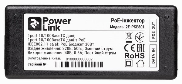 PoE-инжектор 2E PowerLink PSE801, 1xFE, 1xFE PoE, 802.3af/at, 30W