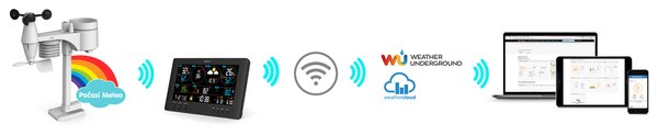 - Датчик 7 в 1: направление и скорость ветра, количество осадков, температура, влажность, ультрафиолетовое излучение и интенсивность света (в комплекте)