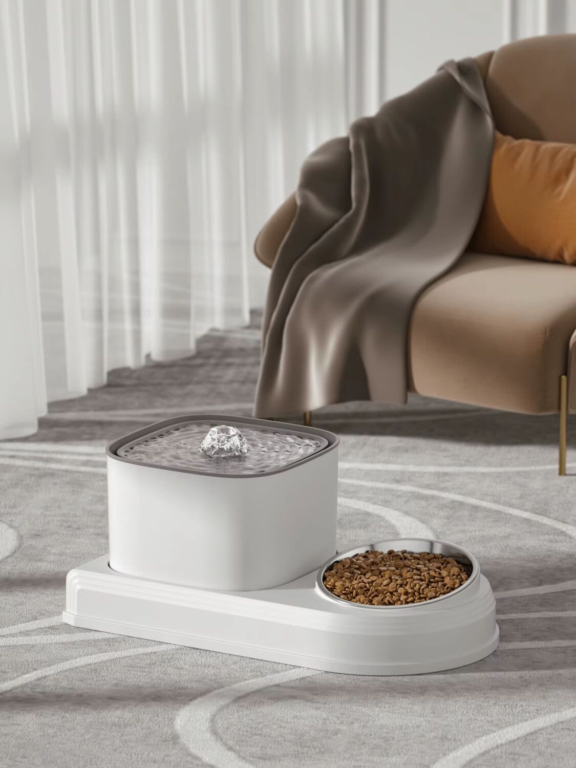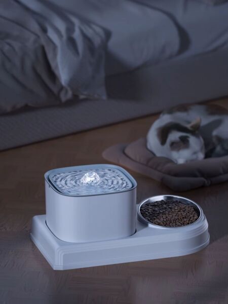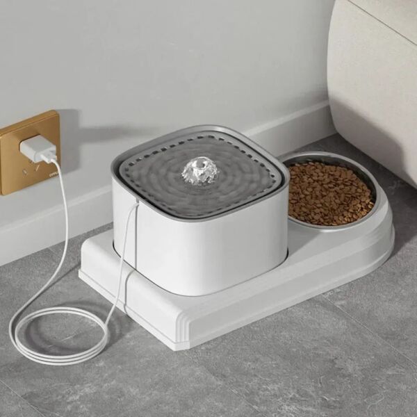 Фонтан и кормушка 2 в 1 универсальное решение для вашего котика. Это устройство объединяет два важных элемента для вашего любимца: металлическую кормушку с наклоном и автоматическую поилку. Одно решение для удобства и эффективности! Вы можете одновременно обеспечить свою кошку не только чистой водой, но и едой, не занимая лишнего пространства.