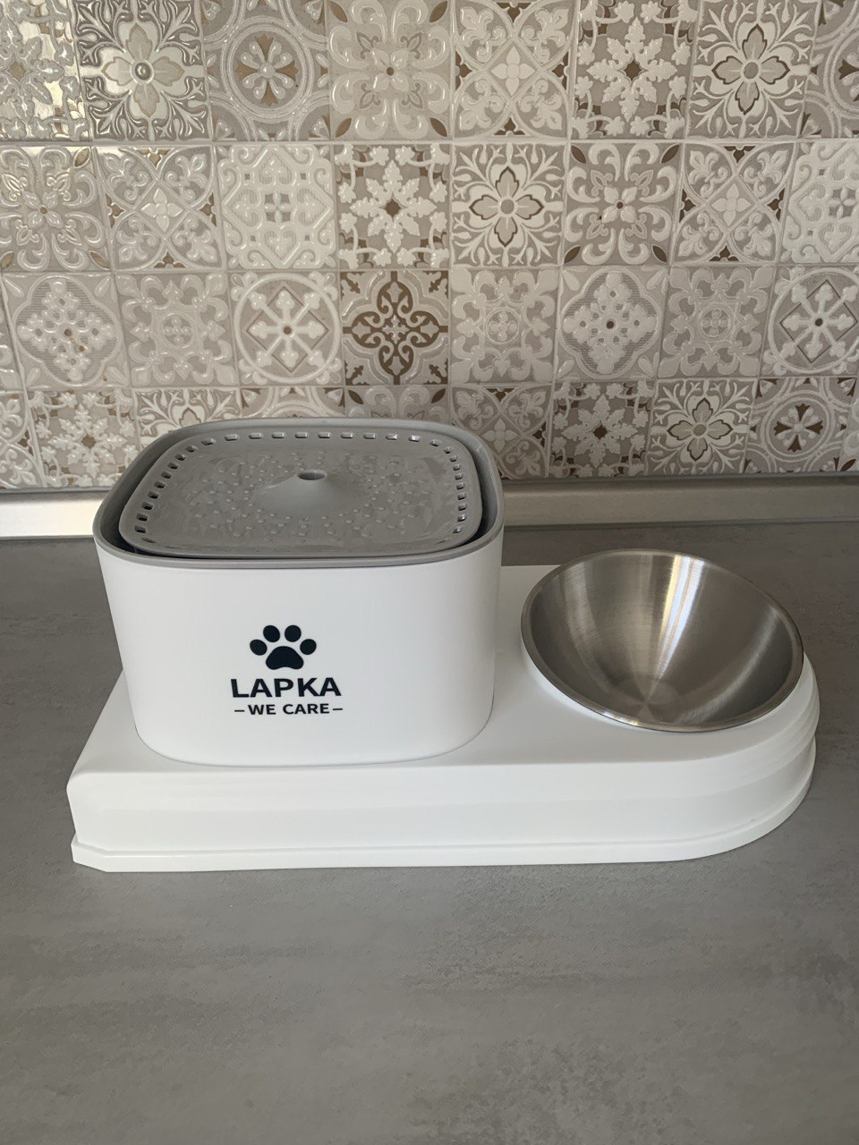 - Фонтан Lapka оснащен эффективными фильтрами они очищают воду от токсинов и химических веществ, которые могут содержаться в водопроводной воде.
