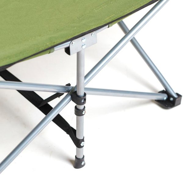 Когда Вы выезжаете на природу на несколько дней, Вам стоит позаботиться о ночлеге. Спать на траве, наверное, романтично, но не комфортно. Раскладушка - лучшее решение для Вас! Тем более, что такую раскладушку-кровать можно поставить как под открытым небом, так и в палатке. Она раскладывается очень быстро и легко, сам процесс займет не более 5 секунд. Необходимо просто отсоединить ремень и надавить рукой посередине. Шесть ножек конструкции делают раскладушку очень устойчивой, чтобы ножки не разъезжались, они дополнительно стягиваются между собой ремнем. Металлическая раскладушка Ranger Military Forest выдержит до 120 кг. Зеленый, не яркий цвет очень приятно и гармонично смотрится во время отдыха и не так сильно пачкается. Удобное и надежное спальное место, которое не раз пригодится и дома, в случае, если приехали гости и их надо разместить на ночь. Раскладушка Ranger Military Forest в сложенном виде практически не занимает места - его можно спрятать под кровать или просто поставить в шкаф, а также легко поместится в багажнике автомобиля, что облегчает транспортировку в случае необходимости. Раскладывается кровать просто, металлическая рама делает раскладушку настолько прочной, что она выдерживает большой вес. Посередине усилена дополнительно тканевой вставкой, чтобы предотвратить провисание и увеличение нагрузки. Раскладушка складывается по принципу гармошки, занимает места не больше обычного кресла. На ножках стоят пластиковые заглушки, чтобы предотвратить повреждение каркаса и не позволить попадать грязи внутрь. Ткань кровати пропитана специальным веществом, чтобы предотвратить впитывание грязи и не пропускать воду. Подголовник расположен под удобным углом с дополнительным наполнителем в середине. Выбрав походную кровать Ranger Military Forest, Вы всегда будете иметь надежную кровать, которая никогда Вас не подведет. Комплектуется чехлом.