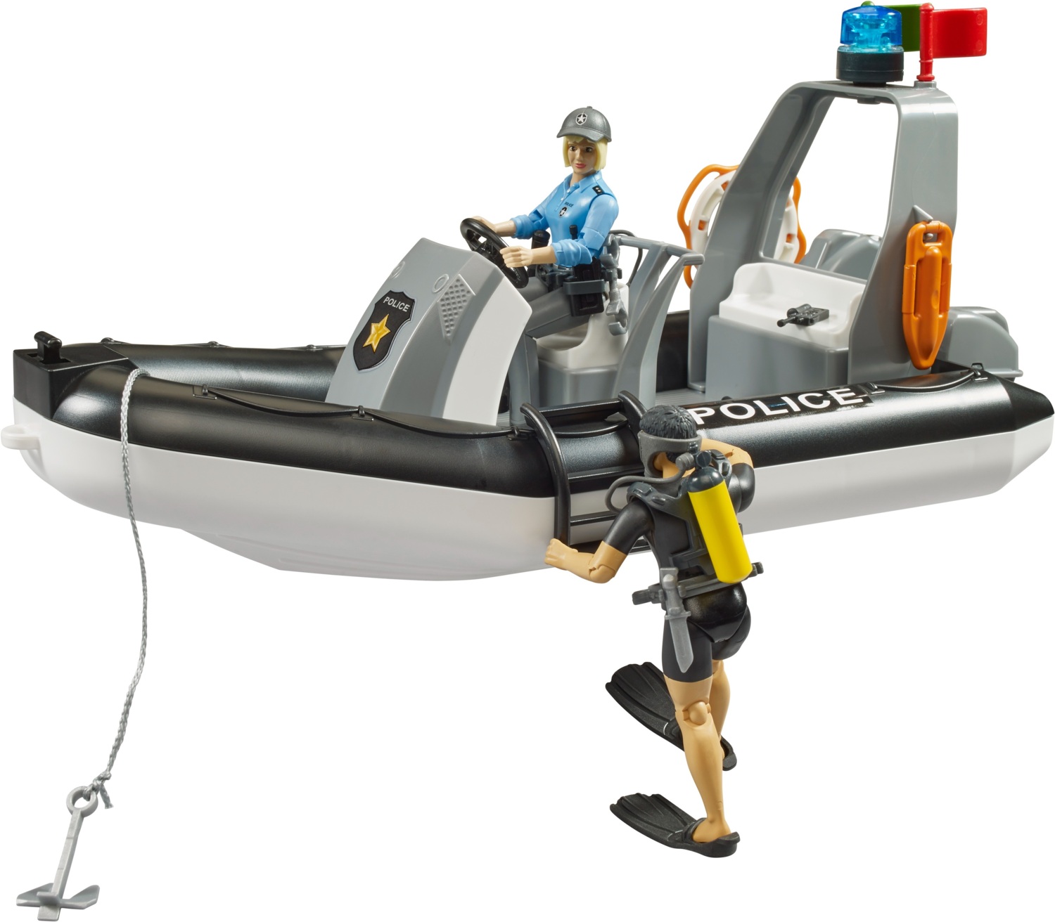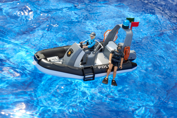 Полицейская лодка сочетает маневренность и универсальность, позволяя разместить внутри три фигурки bworld для увлекательной игры.