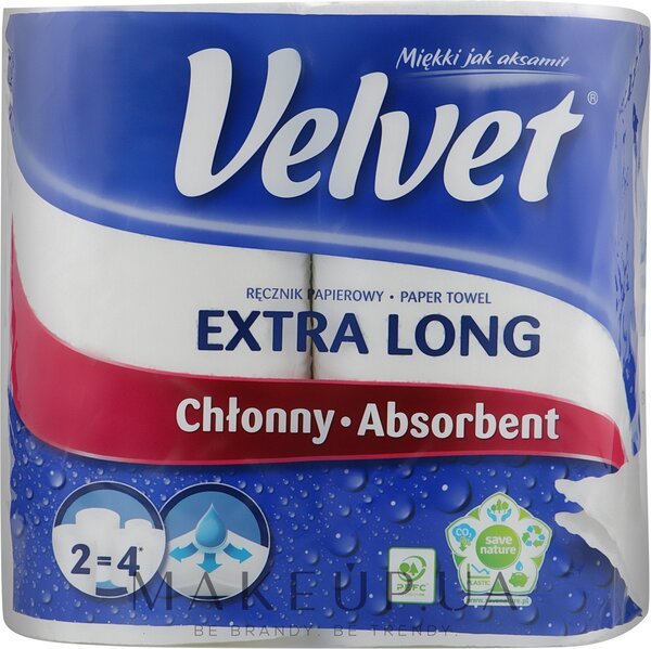 - Полотенце бумажное Velvet Экстра Лонг 2 слоя 2 рулона по 90 отрывов