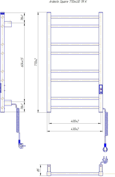 Полотенцесушитель Ardesto электрический Square-TR K, 770x430х80мм (6.1.0701.06.WM)