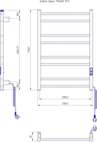 Полотенцесушитель ARDESTO электрический Square-TR K, 770x530, черный (6.1.0702.06.BM)
