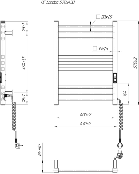 Полотенцесушитель Hygge Family электрический London, 570х430х80мм (6.1.0100.06.WM)