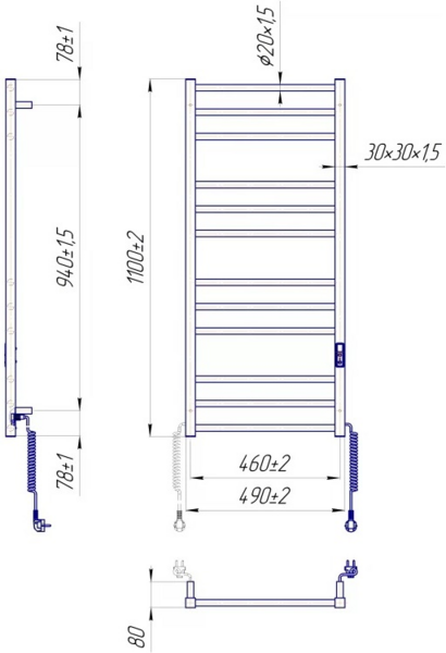 - Полотенцесушитель Mario электрический Премиум Классик-ITR K, 1100х500х80мм (2.2.1610.03.GS)