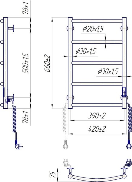 Вместо привычного шнура с зажимом в конструкции изделия предусмотрены разъемы на обеих стойках, позволяющие подключить полотенцесушитель к блоку питания с любой стороны. Розетка справа или слева? Теперь вам не нужно запоминать, с какой стороны находится розетка. Разъем для электрических полотенцесушителей