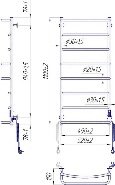 Вместо привычного шнура с зажимом в конструкции изделия предусмотрены разъемы на обеих стойках, позволяющие подключить полотенцесушитель к блоку питания с любой стороны. Розетка справа или слева? Теперь вам не нужно запоминать, с какой стороны находится розетка. Разъем для электрических полотенцесушителей
