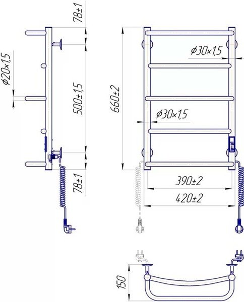 Вместо привычного шнура с зажимом в конструкции изделия предусмотрены разъемы на обеих стойках, позволяющие подключить полотенцесушитель к блоку питания с любой стороны. Розетка справа или слева? Теперь вам не нужно запоминать, с какой стороны находится розетка.