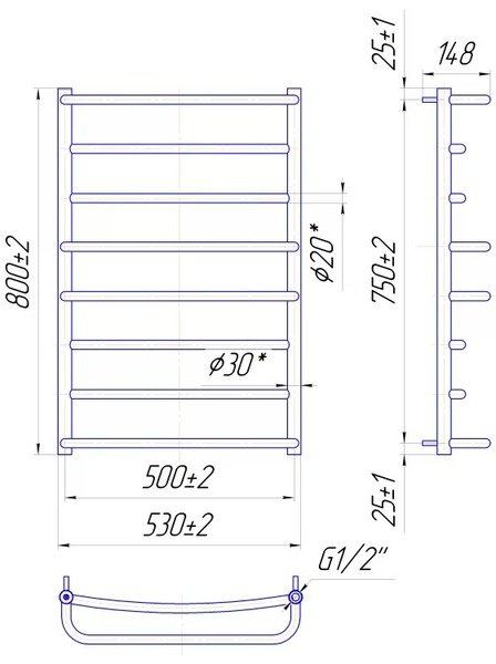 Водяна рушникосушарка Lux 800х530500 Mario