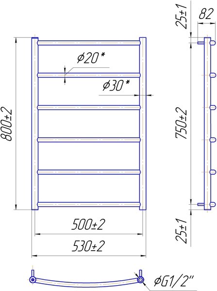 Водяна рушникосушарка Standard 800x530500 Mario